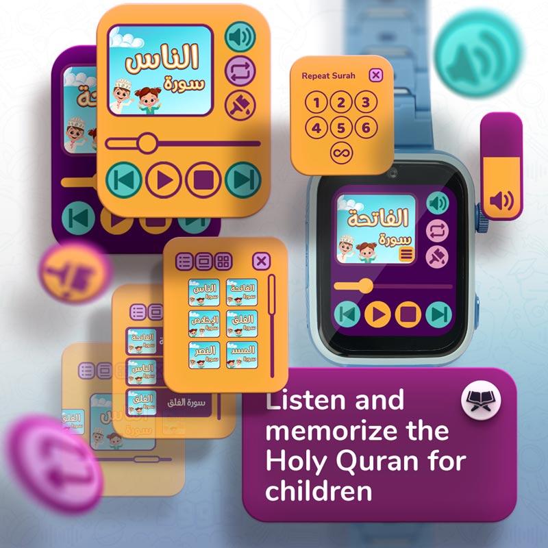 This smartwatch offers a unique feature for children’s Quran education. Kids can listen to any surah from Juz 30, recited by Dawood, enhancing their Quran learning experience. To optimize memorization, the watch allows you to set the number of repetitions for each surah, making it an ideal tool for both learning and retention