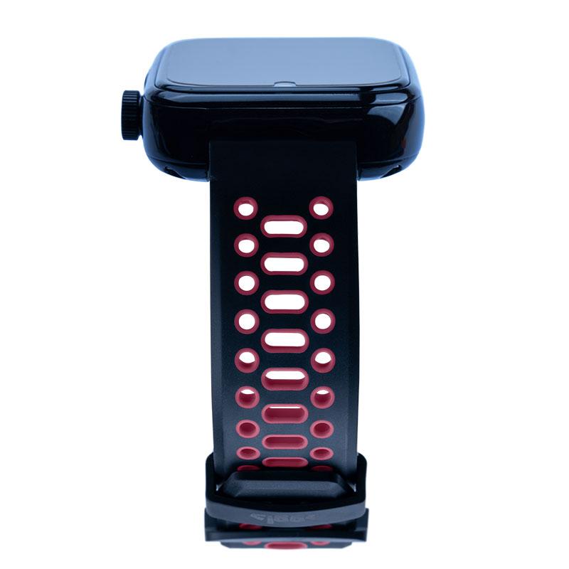 سوار ساعة داوود (سيليكون اسود مع فتحات حمراء)